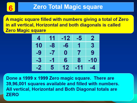 Done a World’s biggest Zero Total Magic squares inside a Magic square. It contains 99 individual magic squares that give a total of Zero. March 5, 2026UncategorizedadminJollymathsBlog